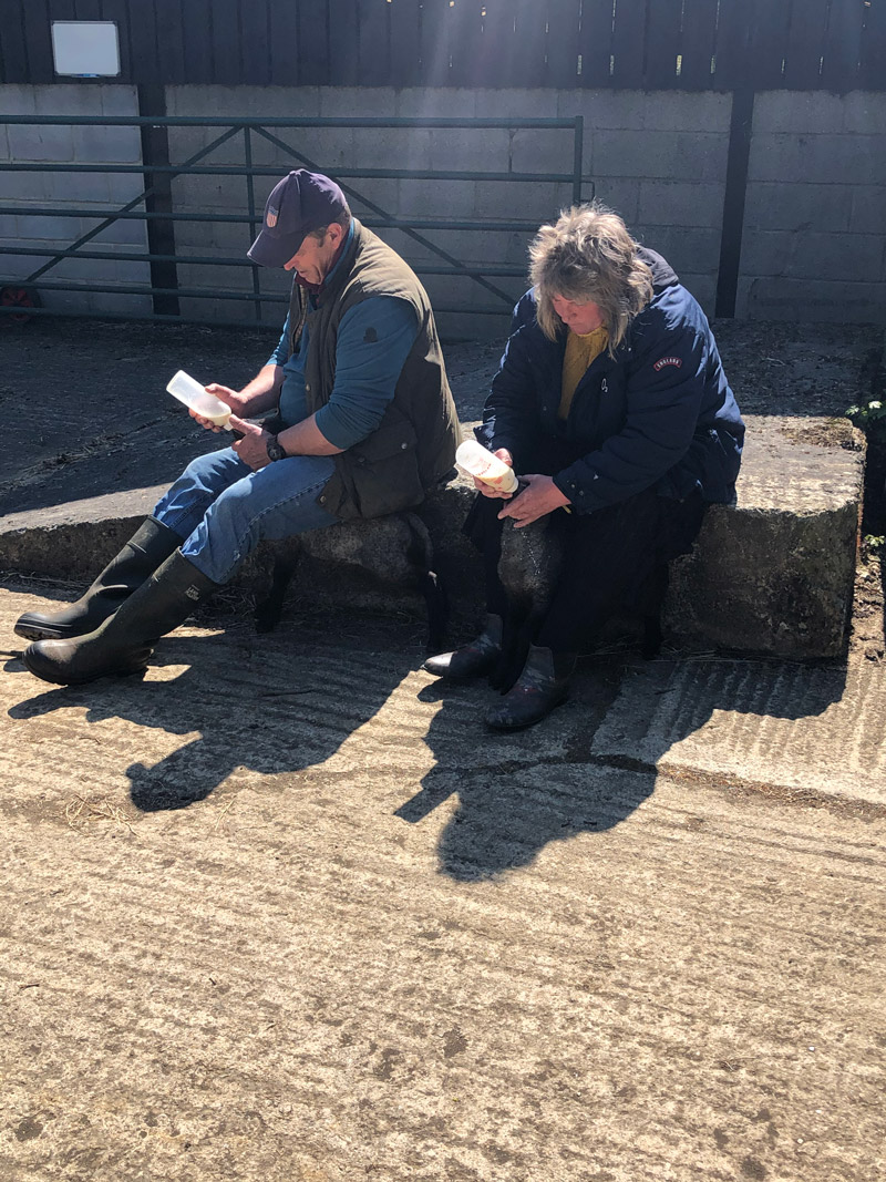 Andy and Nicola feeding orphan lambs