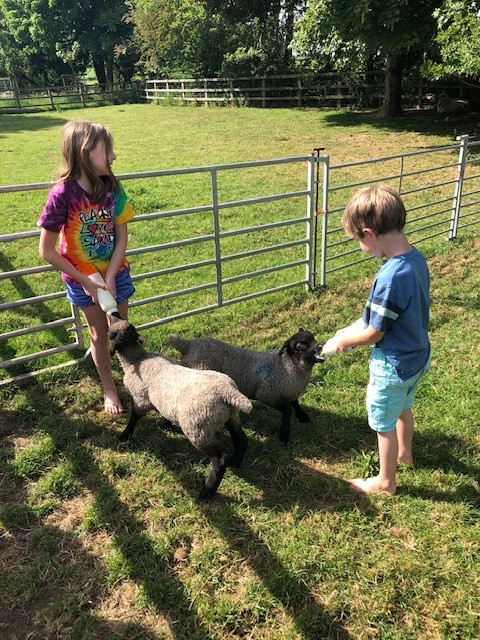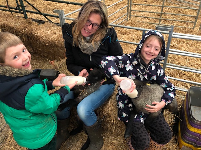 Nina and the kids feeding orphaned lambs