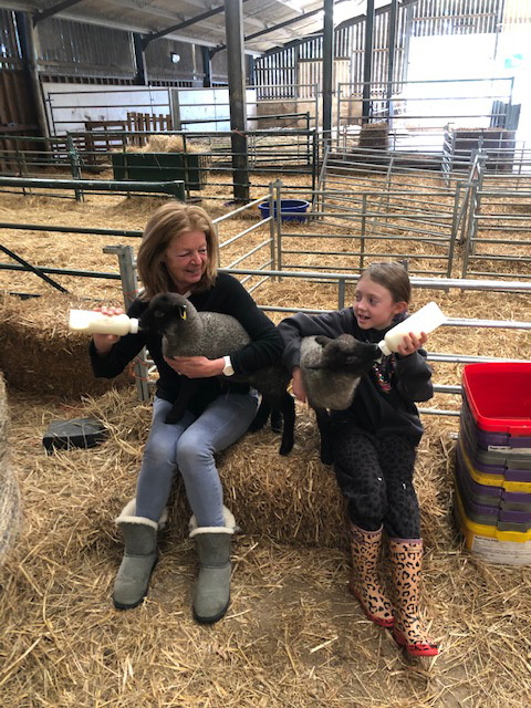 Joanna & Annie feeding orphaned lambs