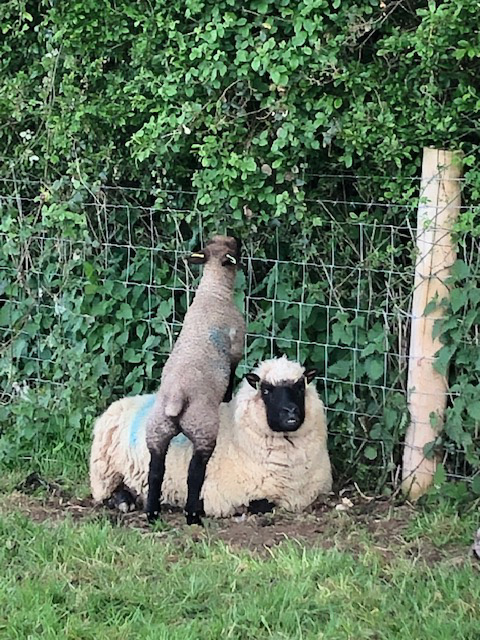Lamb using mother to reach new fodder!